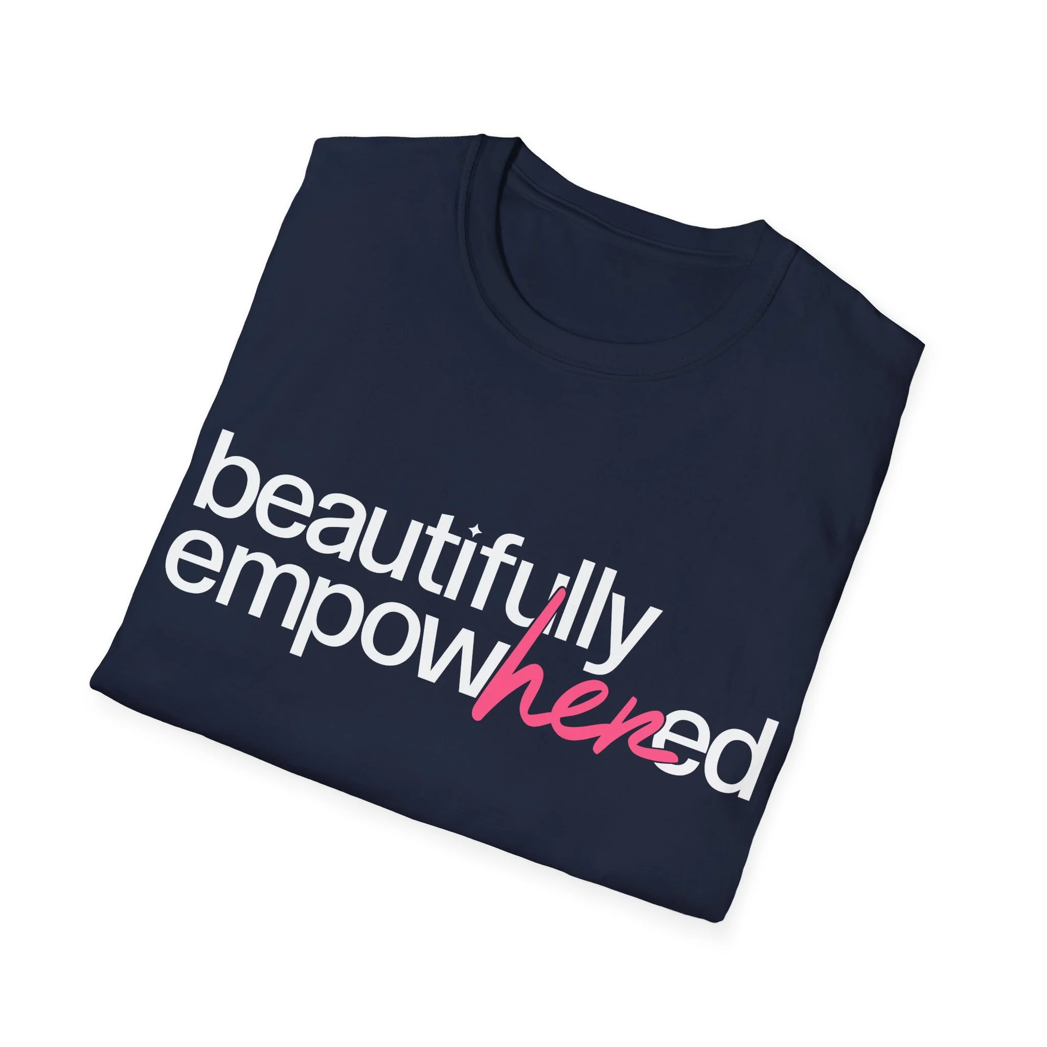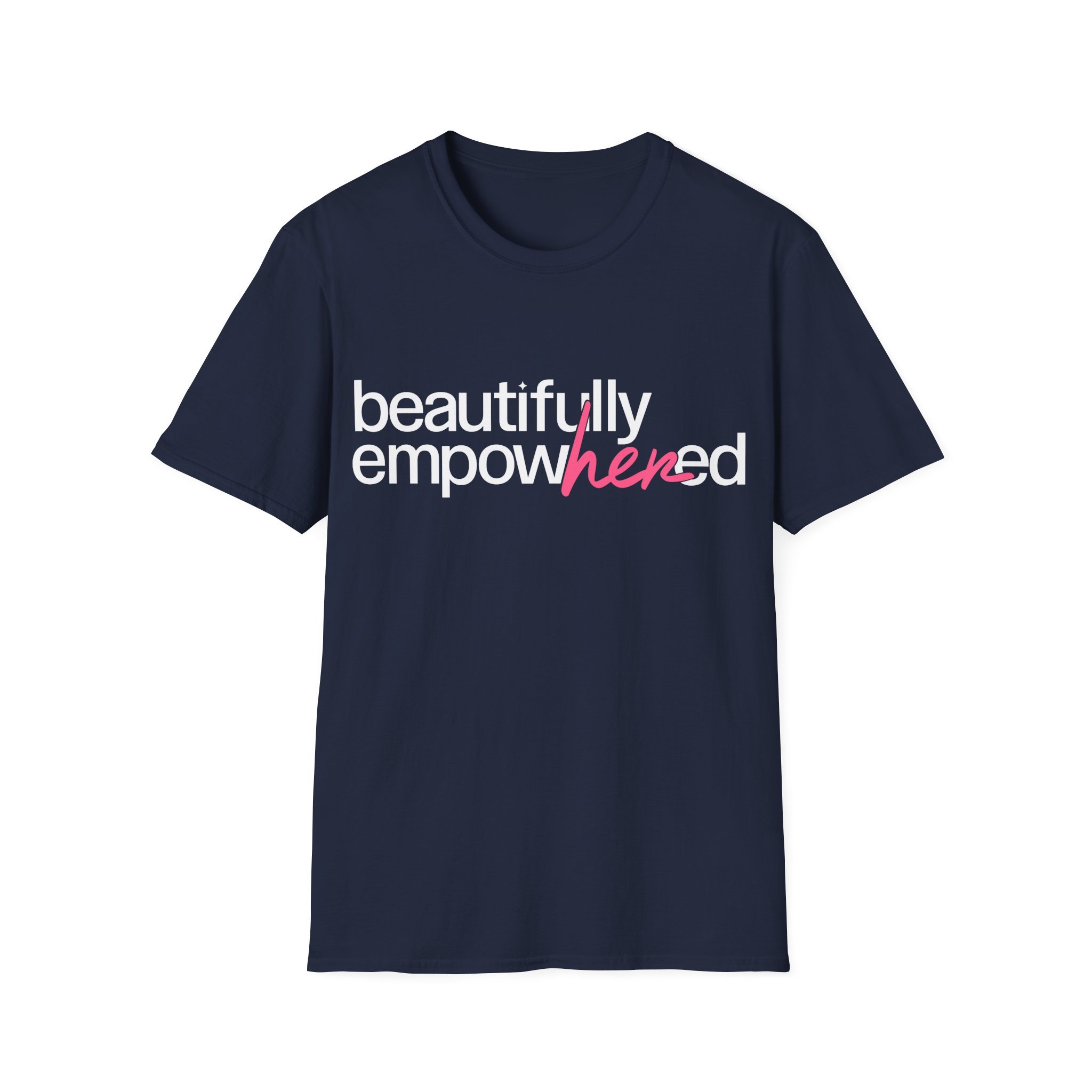 Make a statement without saying a word. The Beautifully EmpowHERed Signature Tee is more than just a shirt, it’s a movement. Designed in a classic navy with bold, clean lettering and a pop of pink highlighting “her,” this piece represents confidence, strength, and the power of women supporting women.